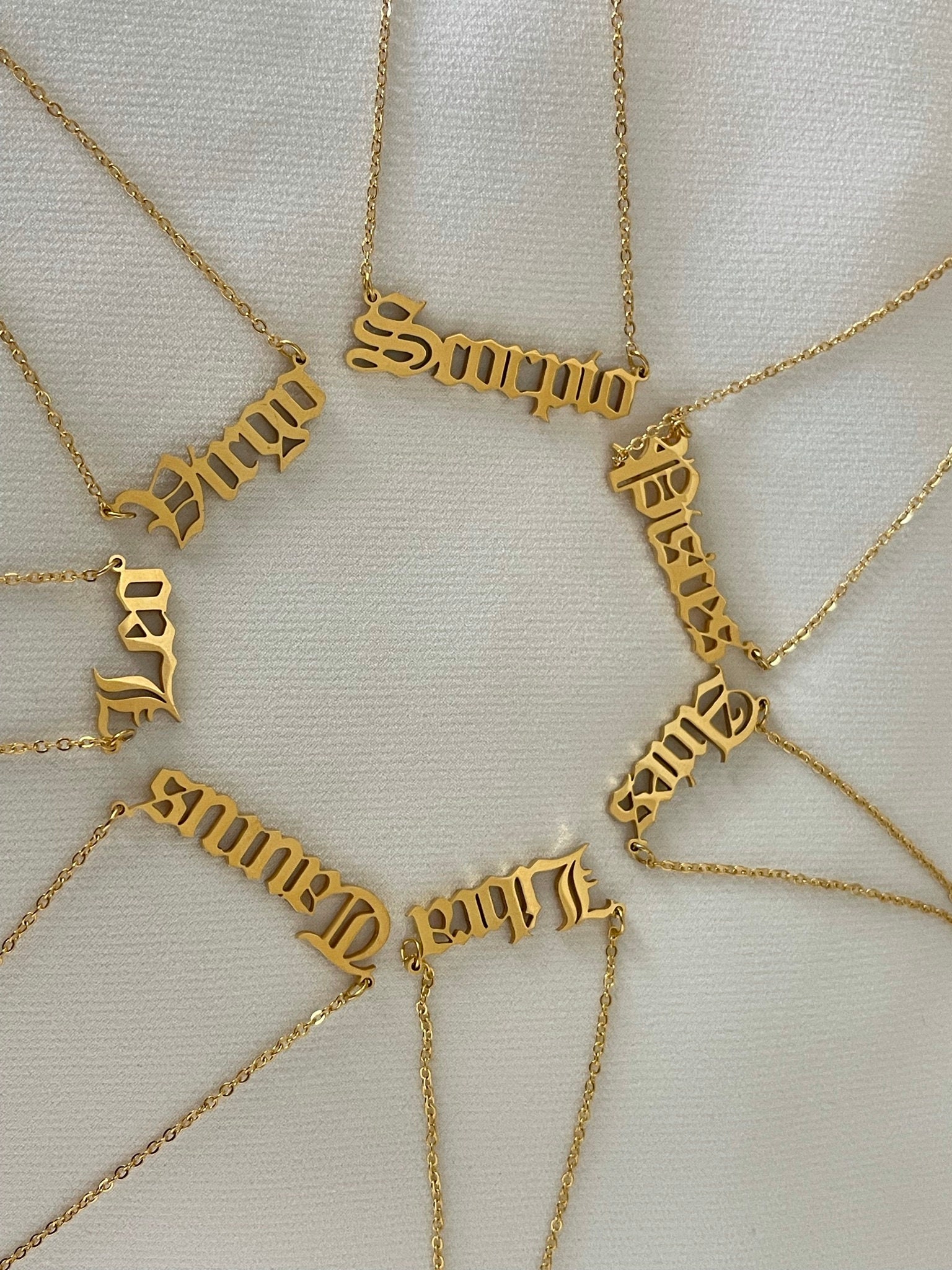 Retro 12 Zodiac Old English Letter Necklace for Women Horoscope Astrology Necklace 14K Gold Plated Mothers Day Birthday Gift Gold Taurus D